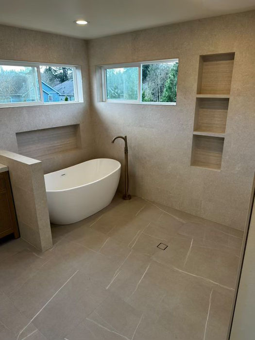 A sleek, modern upgrade with custom tile, a spacious walk-in shower, and high-end finishes for a stylish, functional space.
