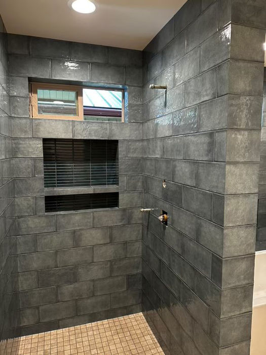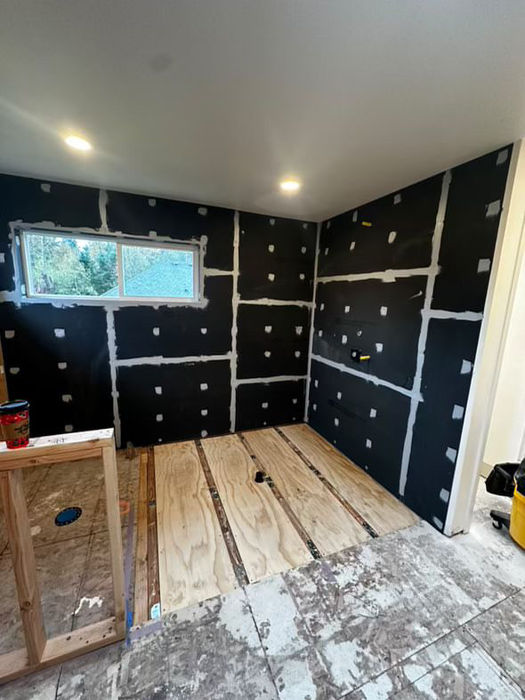Expertly crafted custom tile installation, adding unique character and durability to this Vashon Island home.